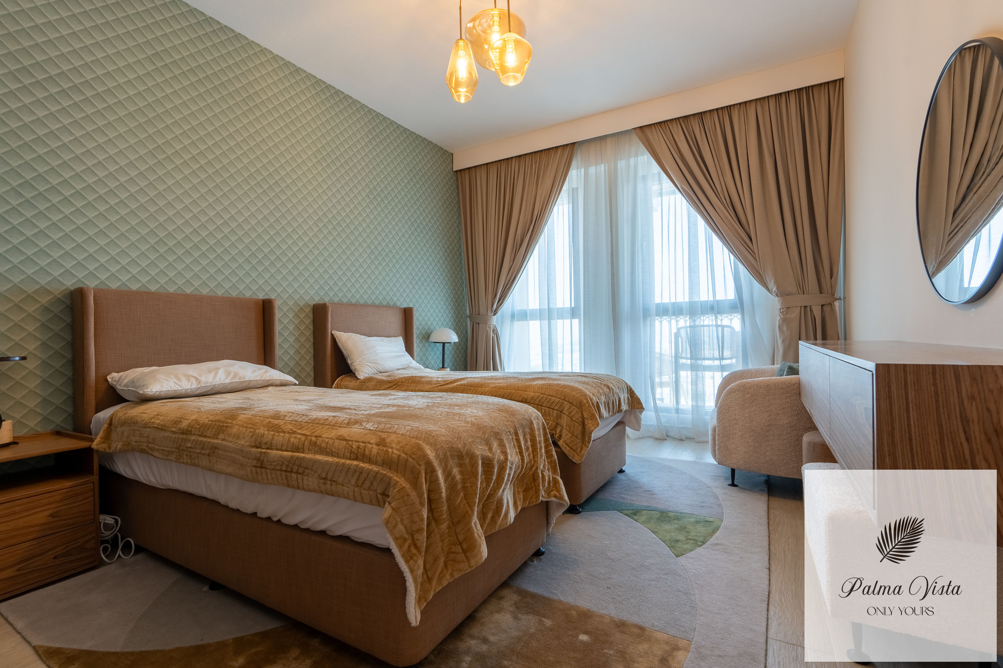 - Bedrooms: 2 spacious bedrooms, furnished by a top designer